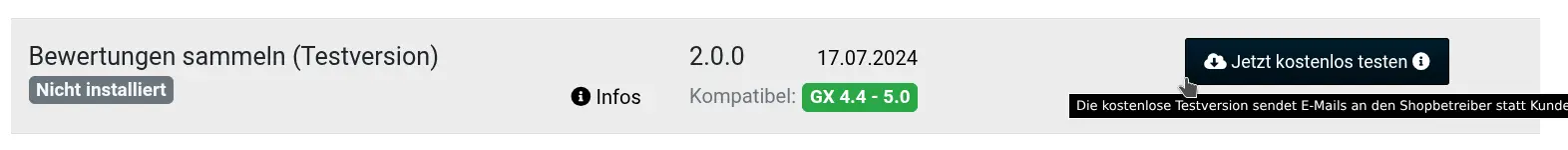 Die kostenlose Testversion sendet E-Mails an den Shopbetreiber statt Kunden.