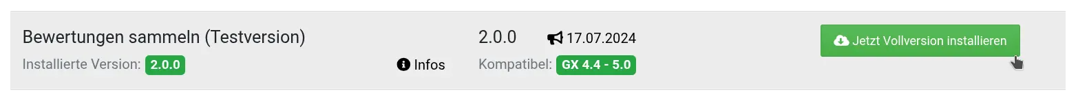 Natürlich muss niemand die Katze im Sack kaufen – oder den Bumerang, ohne ihn geworfen zu haben! 🪃 Es gibt einen kostenlosen Trainings-Bumerang für das „★ Bewertungen sammeln”-Tool, den wir uns in der ebenfalls kostenlosen Modulverwaltung abholen können. Einzige Voraussetzung für das Wurftraining: Der kostenlose ionCube-Loader muss auf unserem Server verfügbar sein, damit der Bumerang die richtige Aerodynamik hat.