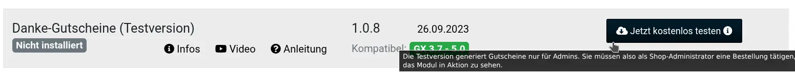Natürlich 🙂 Die kostenlose Testversion der Danke-Gutscheine laden Sie sich einfach via kostenloser Modulverwaltung in den Shop.