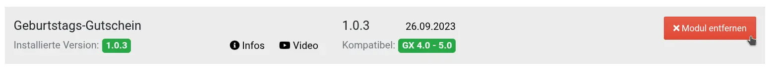 Wie die meisten meiner Gambio-Plugins steht auch das „Geburtstags-Gutschein“ Modul über die kostenlose Modulverwaltung zum Abruf bereit. Die Installation erfolgt also einfach auf Knopfdruck im Gambio-Admin.