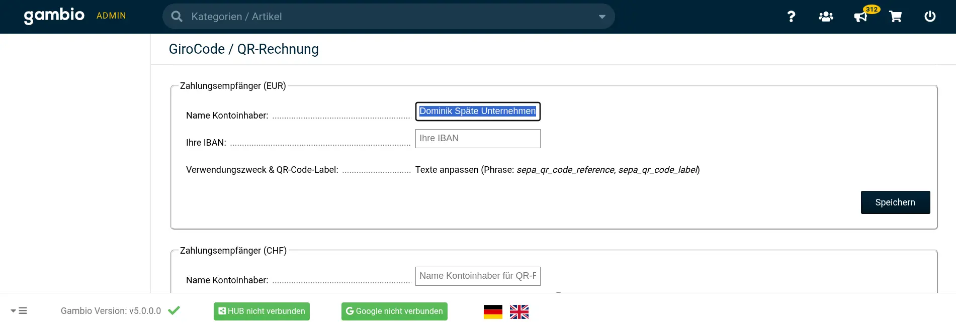 Noch haben wir aber den Gambio Shop, die verkomplizierte Überweisung und müssen mit dieser Kombi irgendwie über die Runden kommen. Um Kundenfrust und Zahlungsausfälle zu vermeiden, muss der Kontoinhaber also überall korrekt hinterlegt sein. Wo ist der in Gambio überall zu hinterlegen?