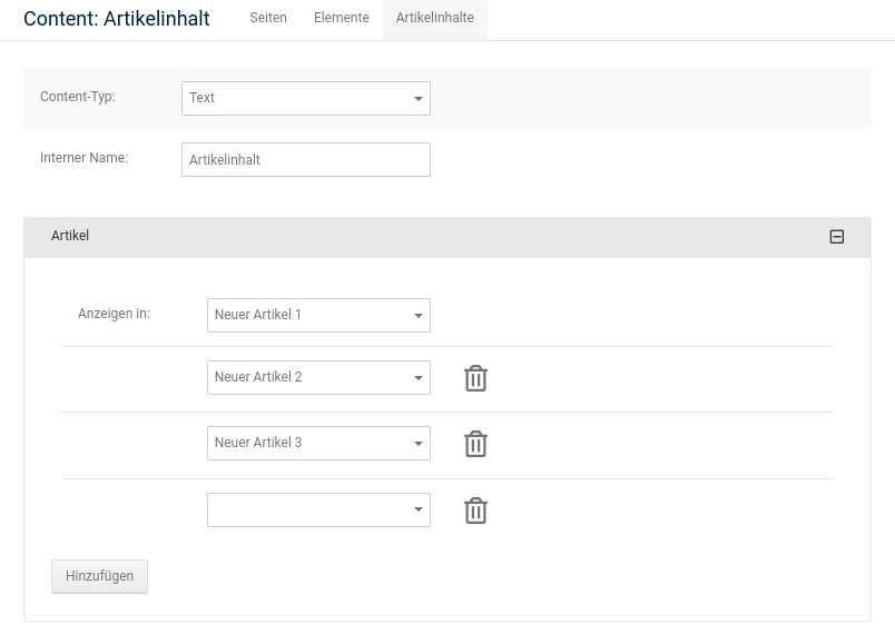 Nachdem wir Inhalte definiert haben, ordnen wir diese den gewünschten Artikeln zu.