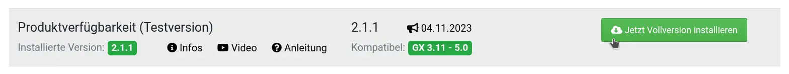 Ob Installation der Testversion, der Vollversion oder Upgrade von Test- auf Vollversion – dank Modulverwaltung ist das alles nur in Knopfdruck im Gambio-Adminbereich. Gleich nach Freischaltung wartet in der Modulverwaltung der Button Jetzt Vollversion installieren darauf, angeklickt zu werden.