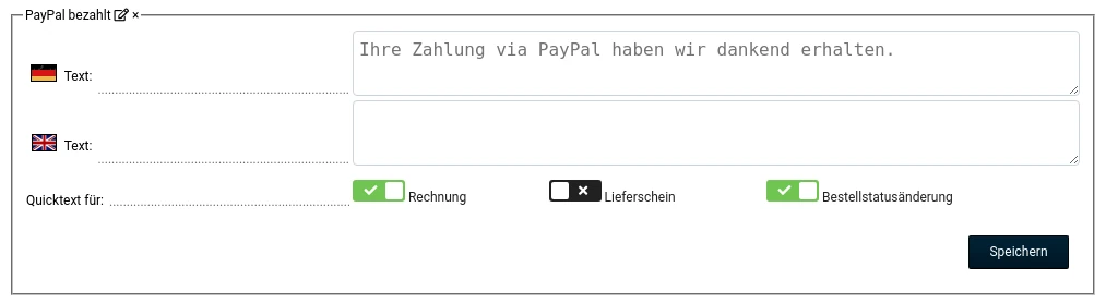 Im neuen Admin-Menüpunkt Bestellungen > Quicktext legen wir beliebig viele Textvorlagen an. Diese stehen uns an den gewünschten Stellen auf Knopfdruck zur Verfügung.