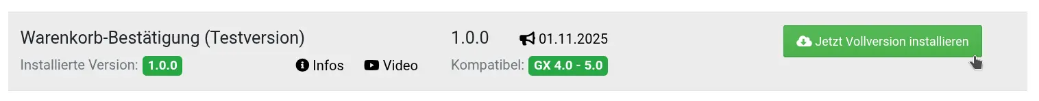 Gleich nach Freischaltung wartet in der Modulverwaltung der Button Jetzt Vollversion installieren darauf, angeklickt zu werden. Wenn das Modul schon im Modul-Center installiert war, bleibt es das auch. Eine jetzt geĂ€nderte Reihenfolge bringt sofort die Produkte an den gewĂŒnschten Positionen zur Geltung đ