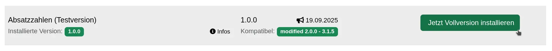 Neugierig geworden? Das „Absatzzahlen“-Modul können wir ganz einfach in einer kostenlosen Testversion ausprobieren. Diese steht uns über die ebenfalls kostenlose Modulverwaltung zur Verfügung. Einzige Voraussetzung: Der kostenlose ionCube-Loader muss auf unserem Server aktiv sein.