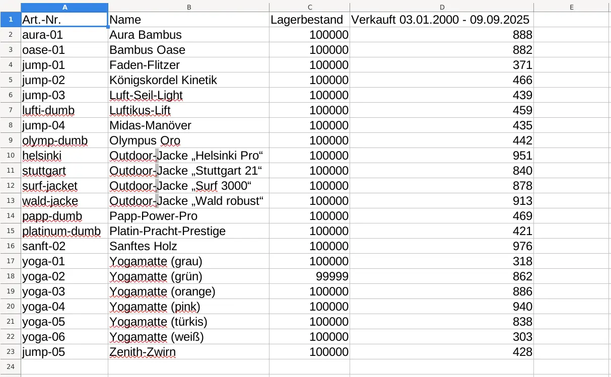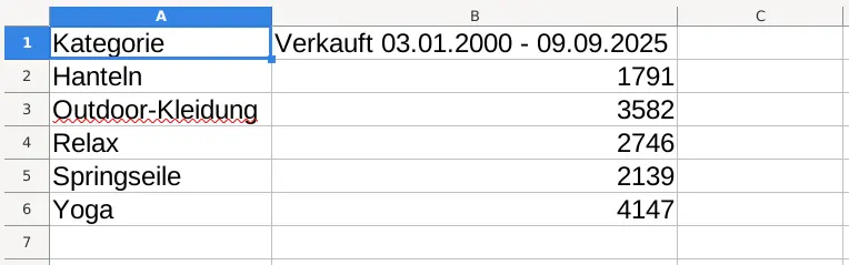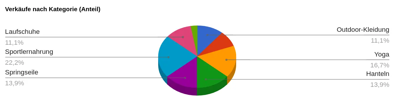 Jörn nutzt die Absatzzahlen, um genau zu sehen, wie sich Kategorien wie Outdoor-Kleidung, Yoga, Hanteln, Relax und Springseile entwickeln. So kann er gezielt in die wachstumsstärksten Bereiche investieren und sein Sortiment strategisch erweitern, statt auf Bauchgefühl zu setzen.