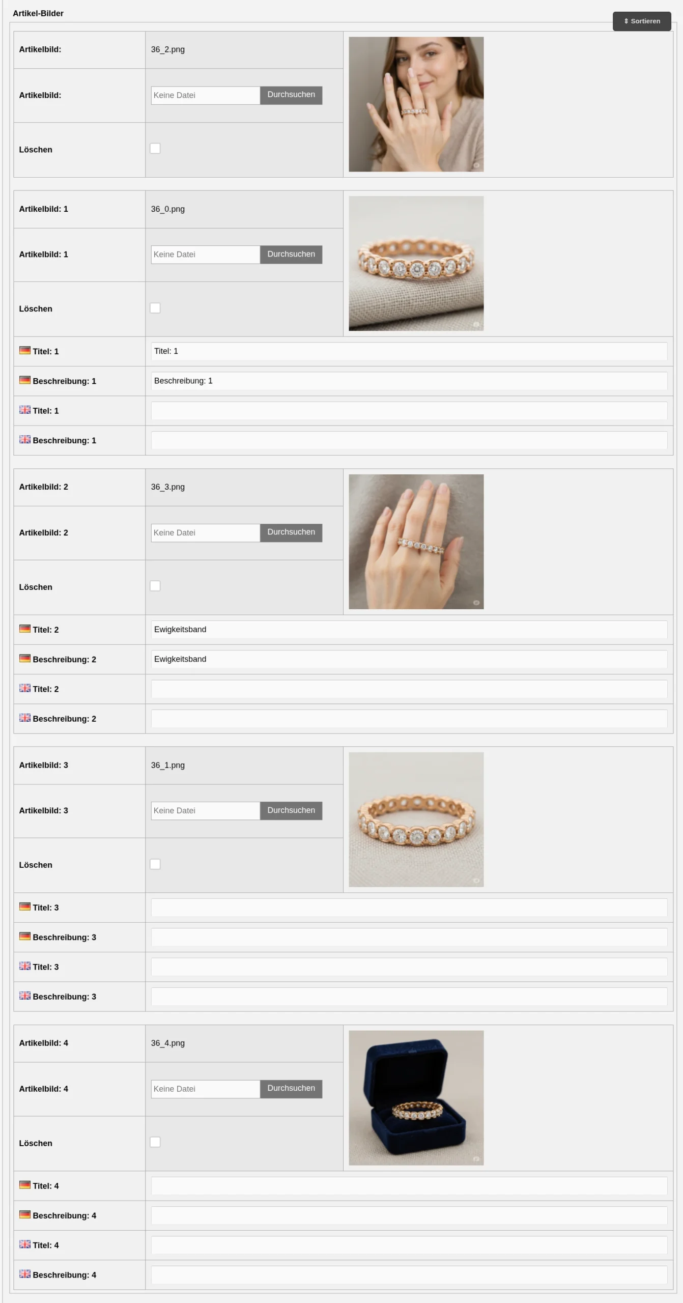 - Artikelbilder einfach in die gewünschte Reihenfolge bringen