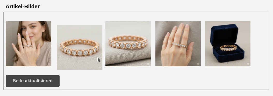 Die Änderung wirkt sich sofort aus. In dem Moment, in dem wir die Reihenfolge im Adminbereich angepasst haben, spiegelt sich diese neue Ordnung auf unseren Produktseiten im Onlineshop wider. Und wenn wir das erste Artikelbild austauschen, indem wir ein anderes Bild an Position 1 ziehen, dann wissen wir, dass genau dieses Bild fortan als Vorschaubild in den Kategorien, auf der Suchergebnisseite und überall dort erscheinen wird, wo unser Produkt auf den ersten Blick überzeugen muss. Es ist die Freiheit, unsere Produkte genau so zu präsentieren, wie sie es verdienen: mit dem besten Bild an der prominentesten Stelle.
