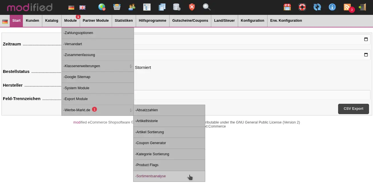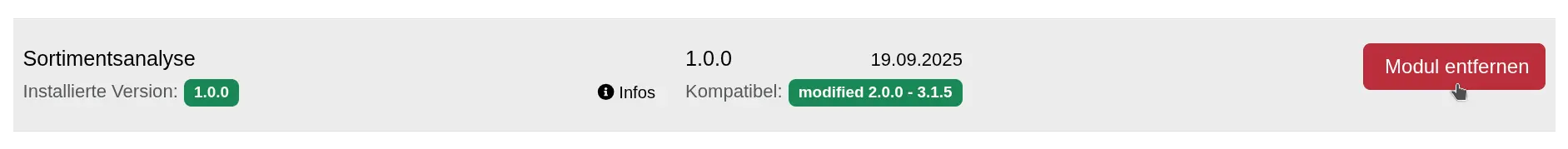 Wo sind die verborgenen Schätze in unserem Sortiment? Und wo die Ladenhüter? 🗺️ Das „Sortimentsanalyse“-Modul ist unsere persönliche Schatzkarte, die uns Topseller, Flops und unentdecktes Potenzial aufzeigt. Wie bei allen meinen modified Modulen, ist die Installation dieses mächtigen Werkzeugs ein Kinderspiel: Wir nutzen die 1-Klick-Installation in der kostenlosen Modulverwaltung für modified.