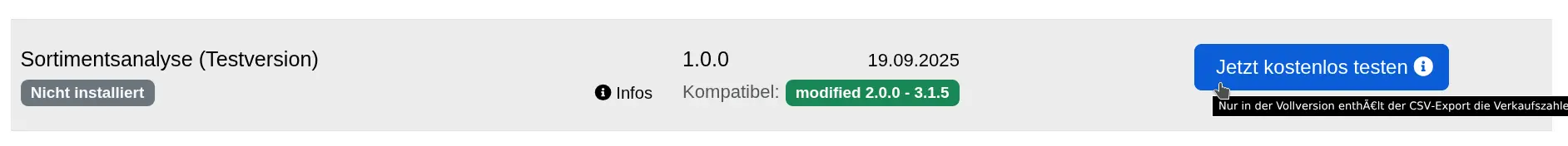 Nur in der Vollversion enthält der CSV-Export die Verkaufszahlen.