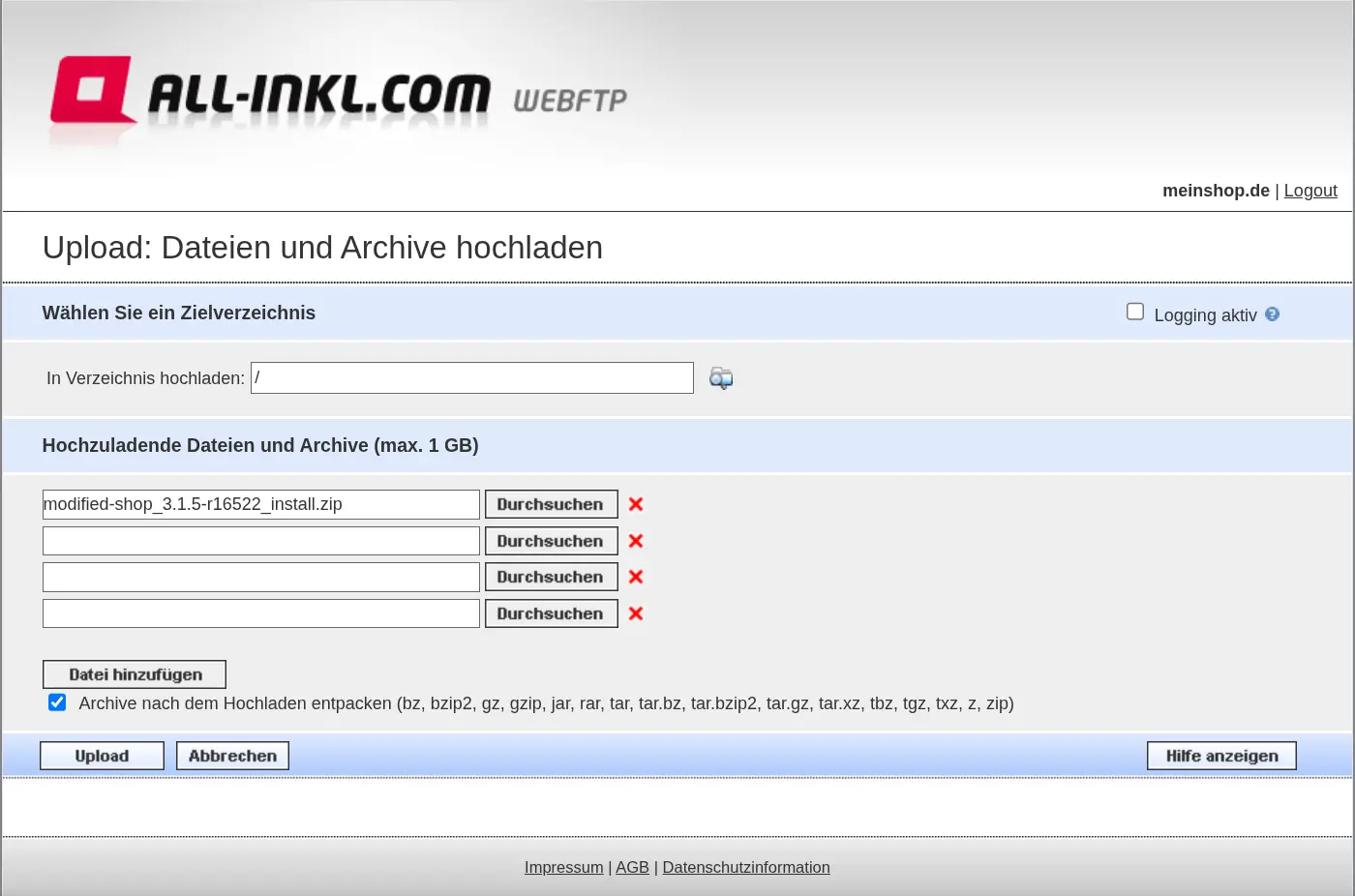 đ modified eCommerce installieren mit FileZilla bei ALL-INKL đ