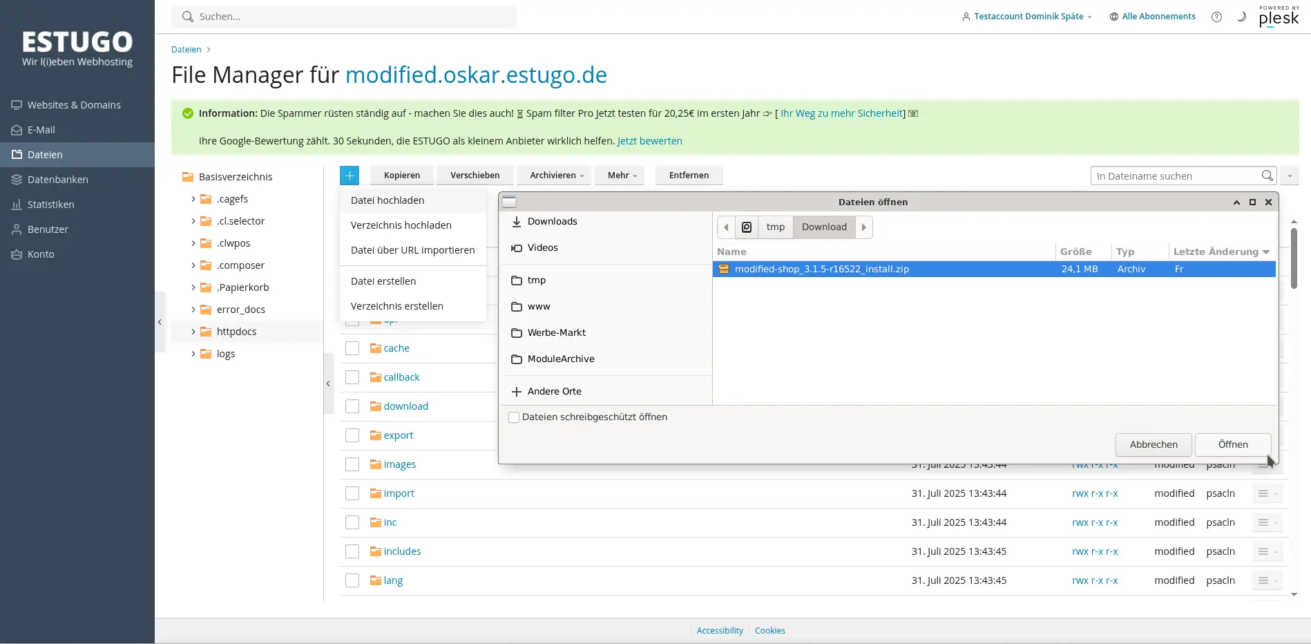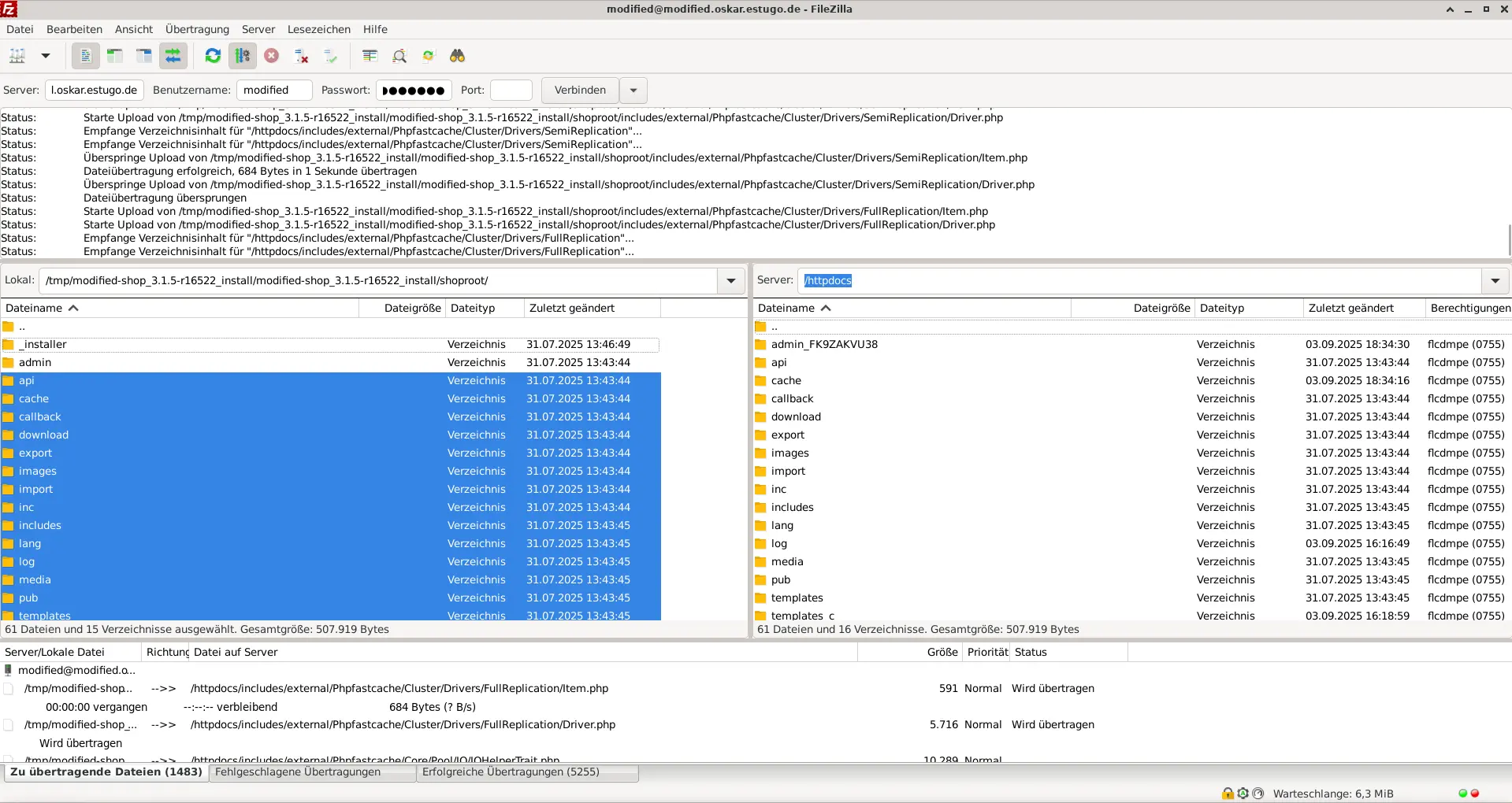 . Nach erfolgreichem Verschieben löschen wir das Verzeichnis modified-shop_3.1.5-r16522_install