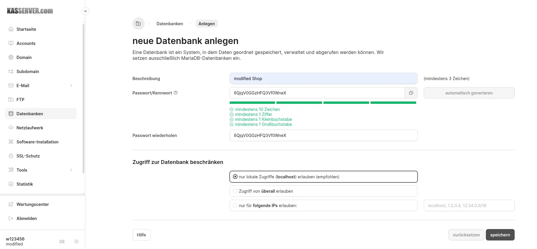 Ohne Datenbank kein Shop. Im Hosting-Backend legen wir eine neue Datenbank an, vergeben einen eindeutigen Benutzernamen und ein starkes Passwort. Dieses Passwort brauchen wir nur einmal bei der Installation â danach wird es in der Konfigurationsdatei gespeichert.