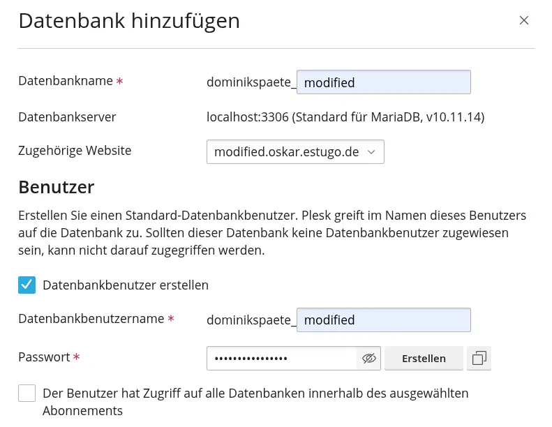 Das beim Anlegen der Datenbank (genauer: des Datenbanknutzers) generierte Passwort. - Zeichensatz