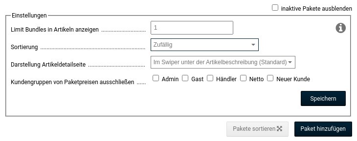 Mit der Option inaktive Pakete ausblenden sorgen Sie für mehr Übersicht im Backend, wenn Sie eine Vielzahl von Paketen angelegt haben, von denen nicht alle aktiv sind.